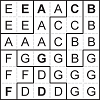 Rules: Bei Chiiki™ ist es Ihre Aufgabe, die Felder eines Rasters in mehrere Bereiche zu teilen und in jedes Feld einen Buchstaben zu schreiben. Dieser kennzeichnet den Bereich, zu dem das Feld gehört: Alle Felder eines Bereichs haben den gleichen Buchstaben und Felder mit dem gleichen Buchstaben gehören zum selben Bereich. Jeder zu verwendende Buchstabe kommt schon mindestens einmal vor. Es dürfen nie mehr als drei gleiche Buchstaben direkt hintereinander in einer Reihe stehen (weder waagrecht noch senkrecht) und jeder Bereich muss mindestens vier Buchstaben haben.